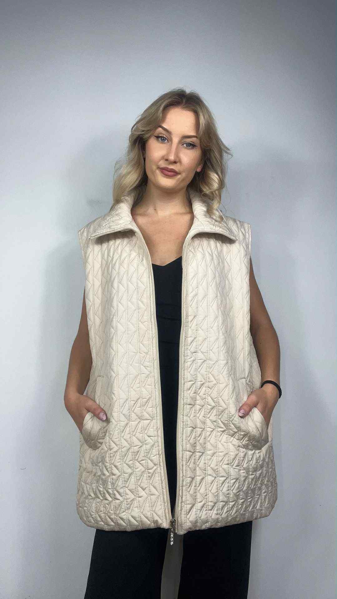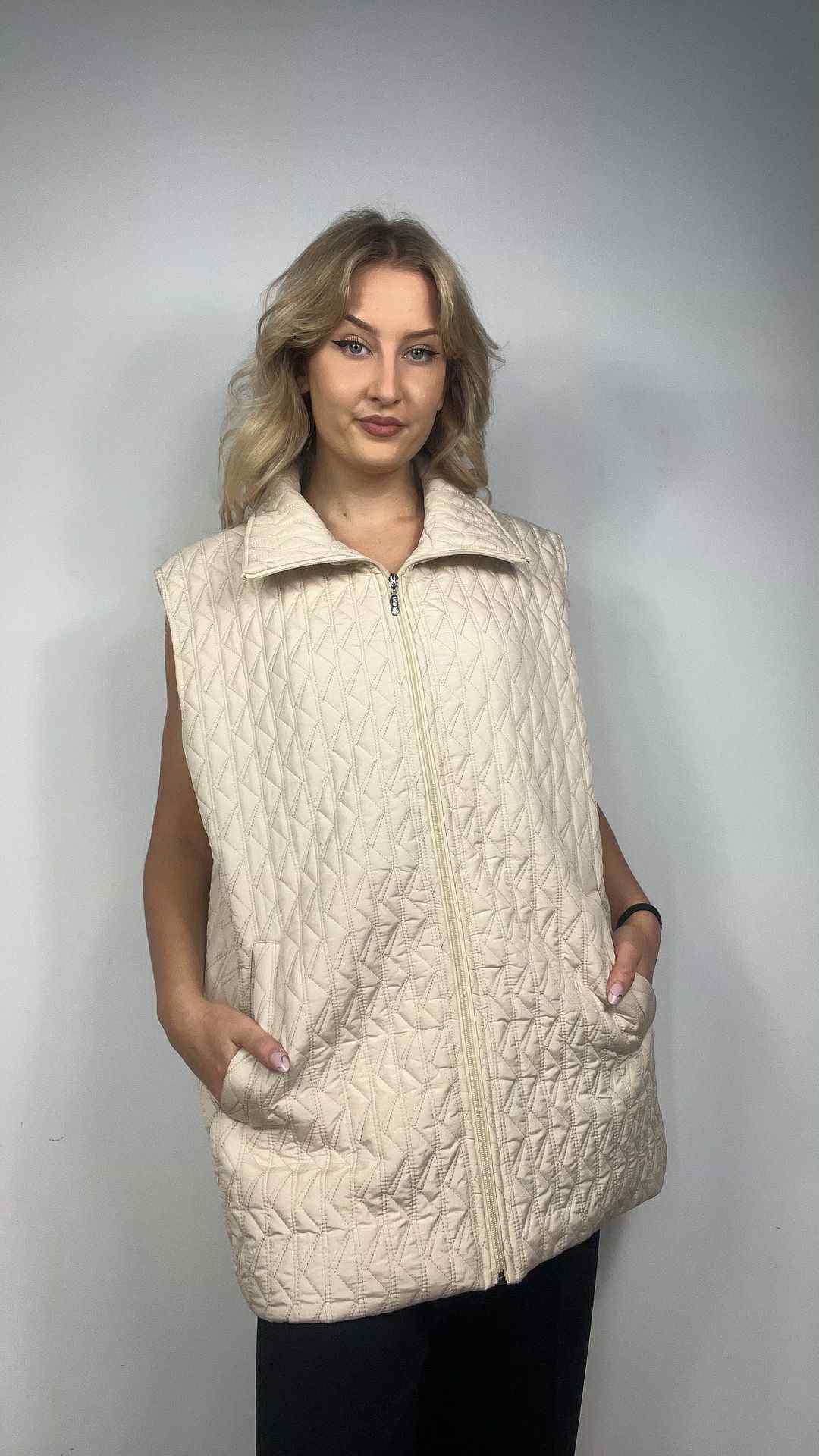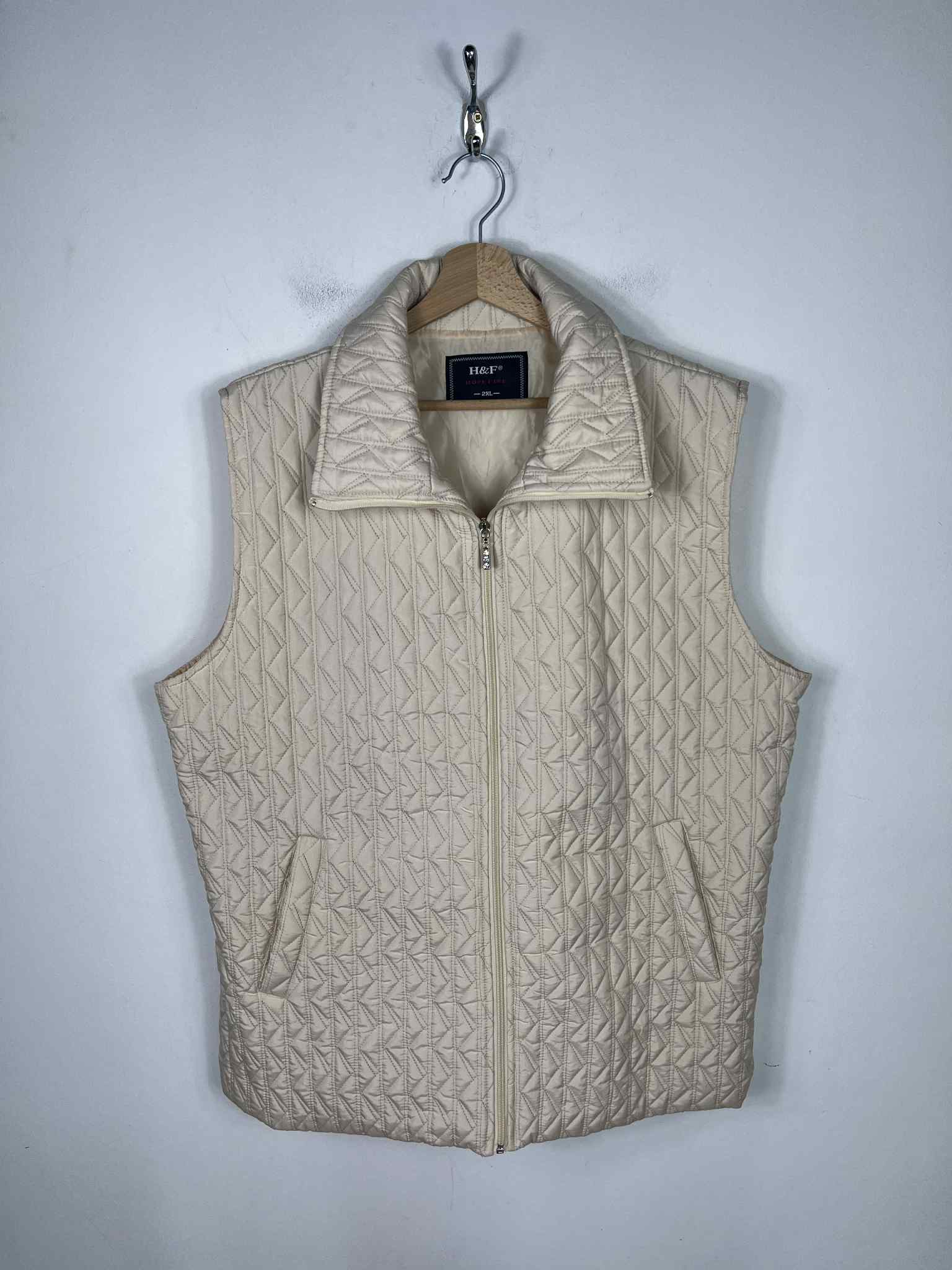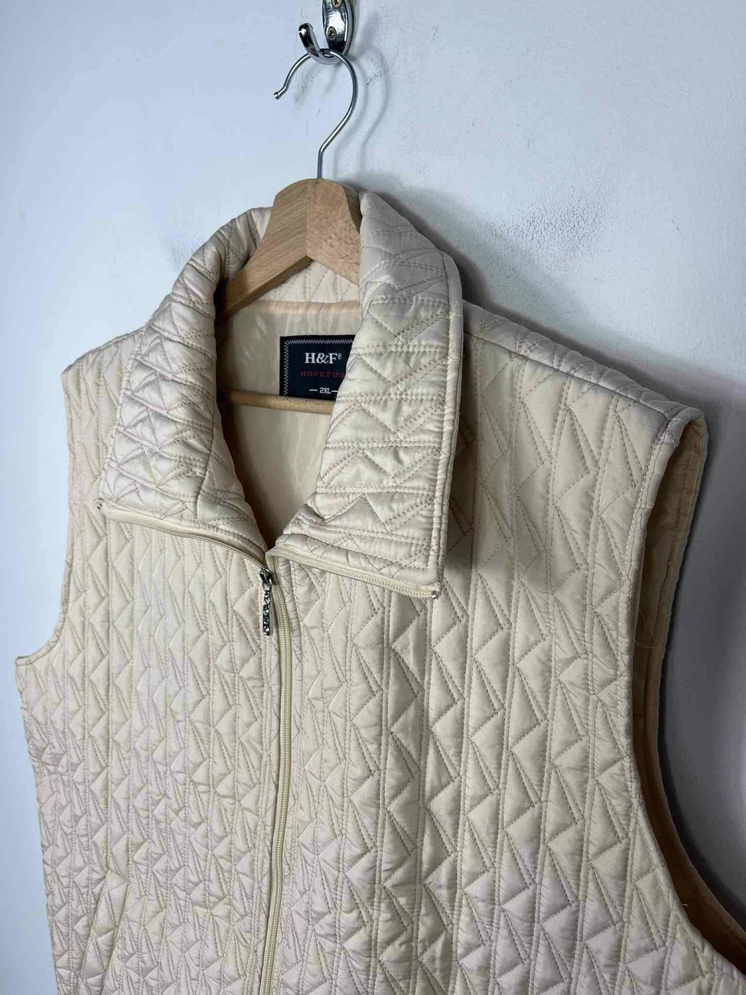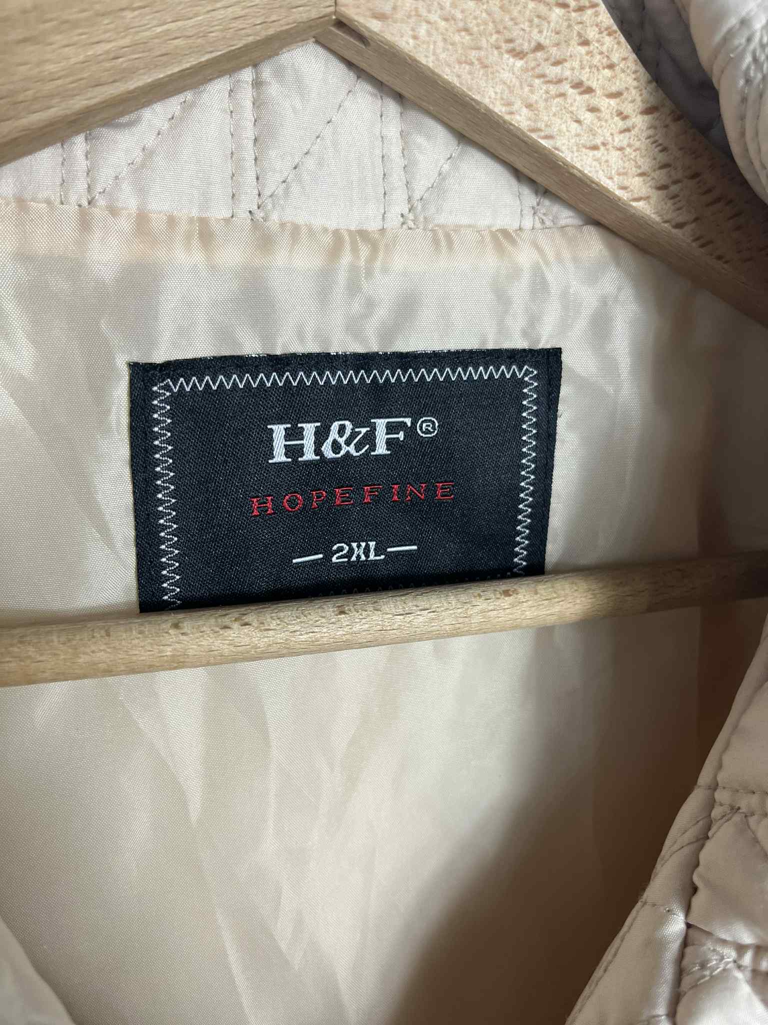 Kamizelka/bezrękawnik H&F Hopefine rozmiar 2XL. Kolor beżowy. Zapinany na suwak. Lekkie ocieplenie. Wymiary: długość 77 cm, pachy 67 cm, ramiona 49 cm. Stan idealny.