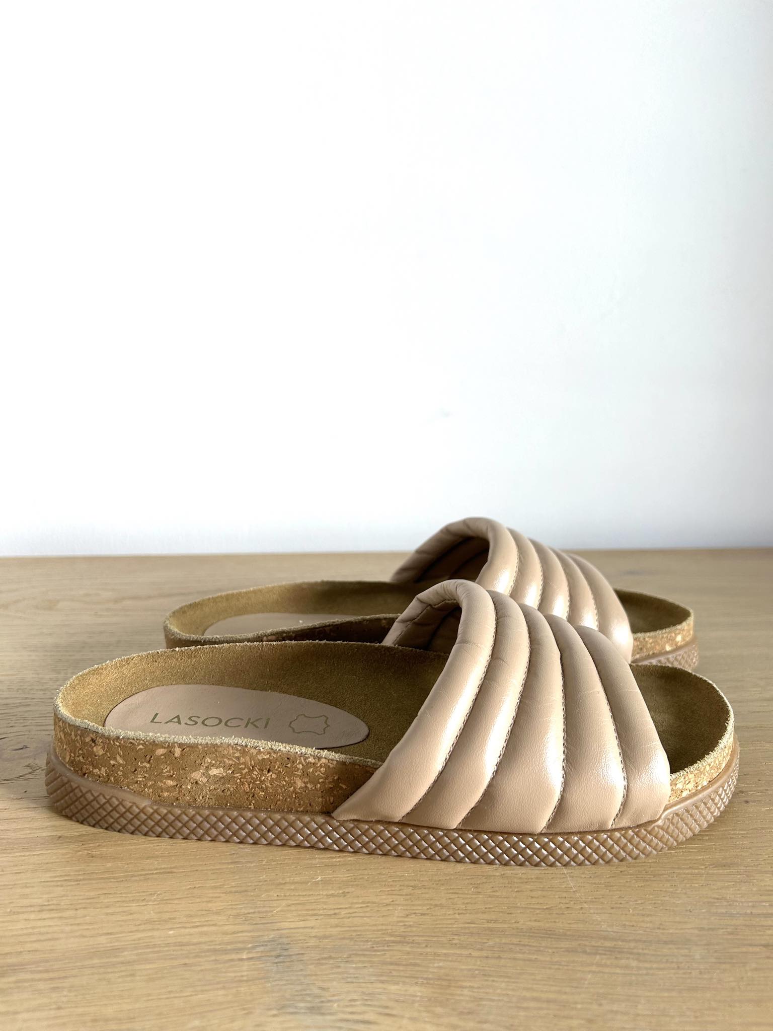 Klapki Lasocki w kolorze beżowym. Rozmiar 36. Wkładka zamszowa skóra naturalna. Długość wkładki 23 cm. Stan nowe bez metki.