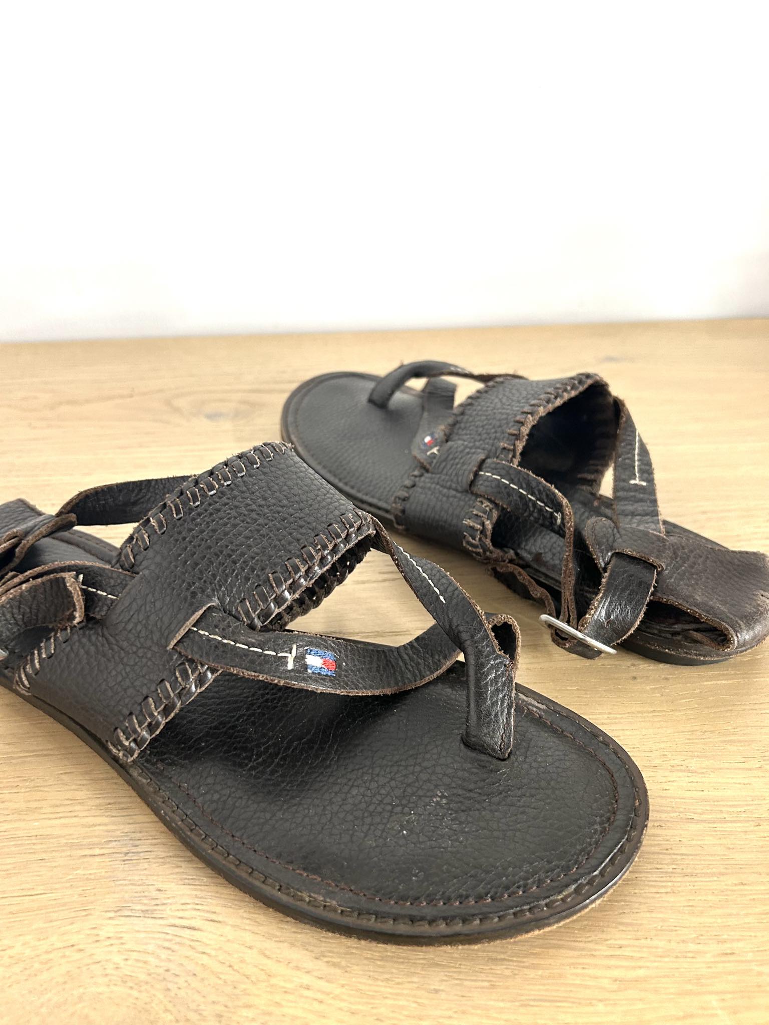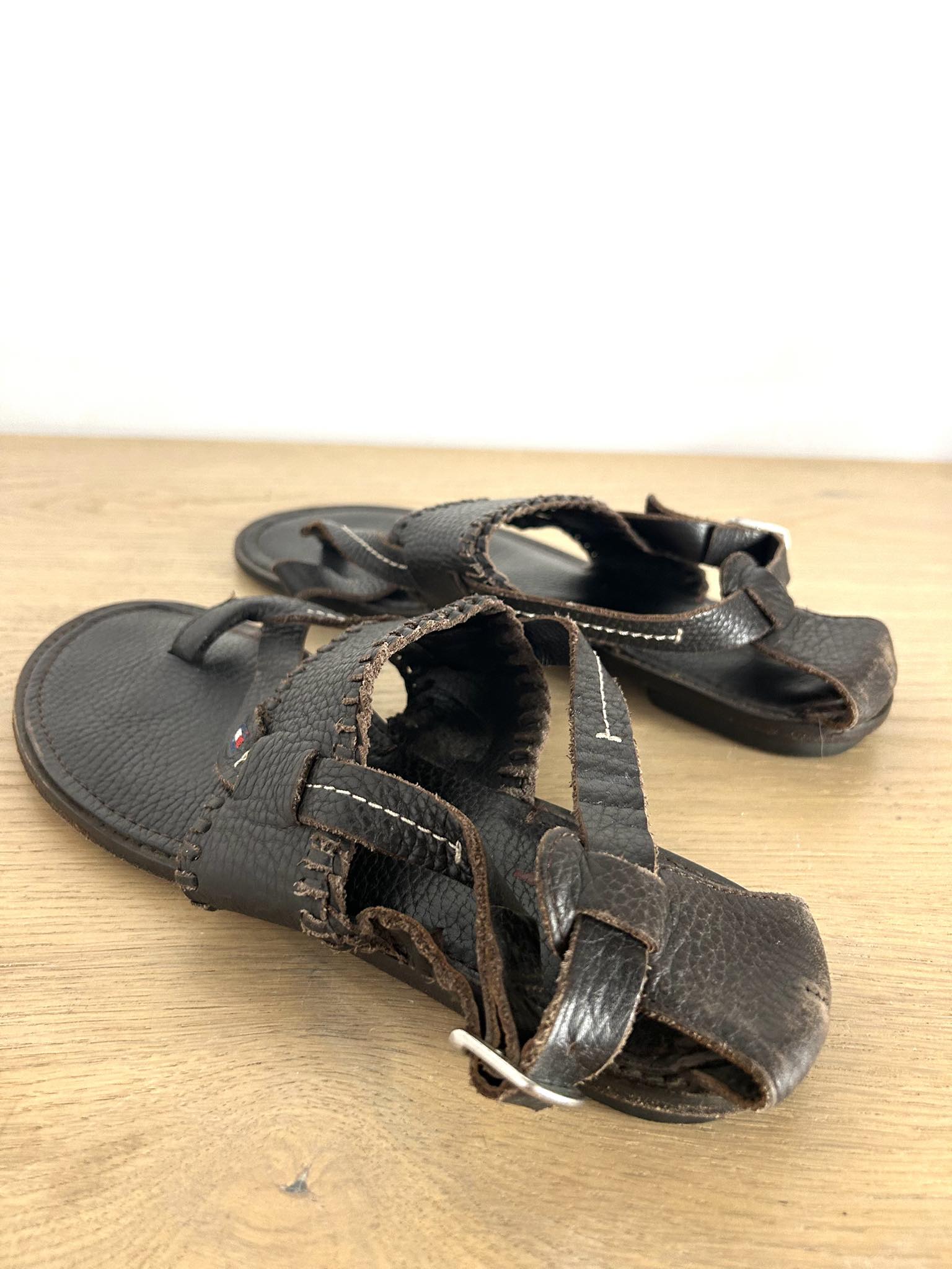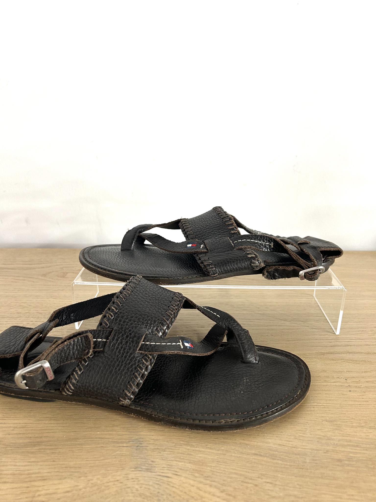 Płaskie sandały Tommy Hilfiger ze skóry naturalnej rozmiar 39. Typ jak japonki na jedne palec. Kolor brązowy. Miękka solidna skóra. Cena producenta 399,00 zł. Długość buta 25,5 cm. Stan bardzo dobry.