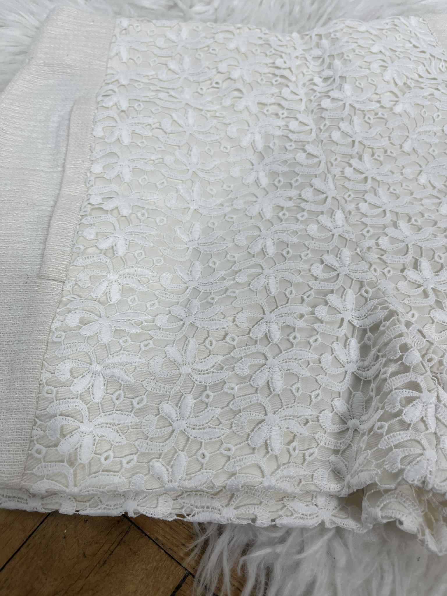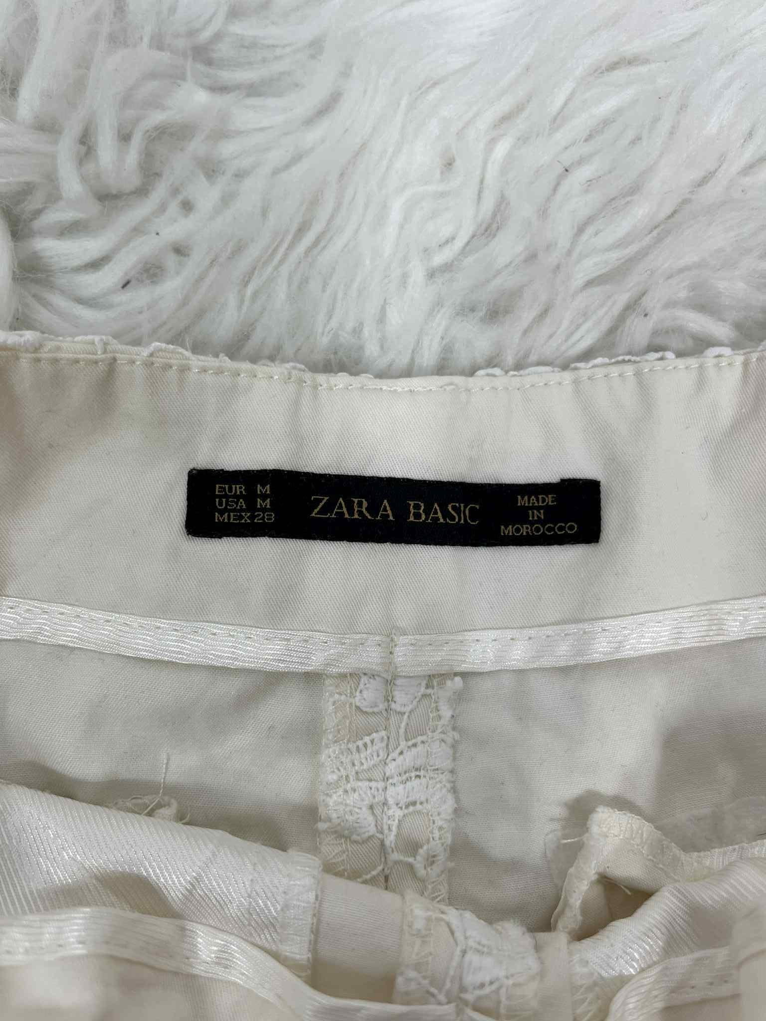 Spodenki Zara rozmiar M. Kolor kremowy. Wysoki stan. Zapinane na kryty suwak z boku. Ażurowy materiał boho. Podszewka. Wycięta metka ze składem. Wymiary: długość 39 cm, pas 38 cm, krok 30 cm, szerokość nogawki 32 cm. Stan bardzo dobry.