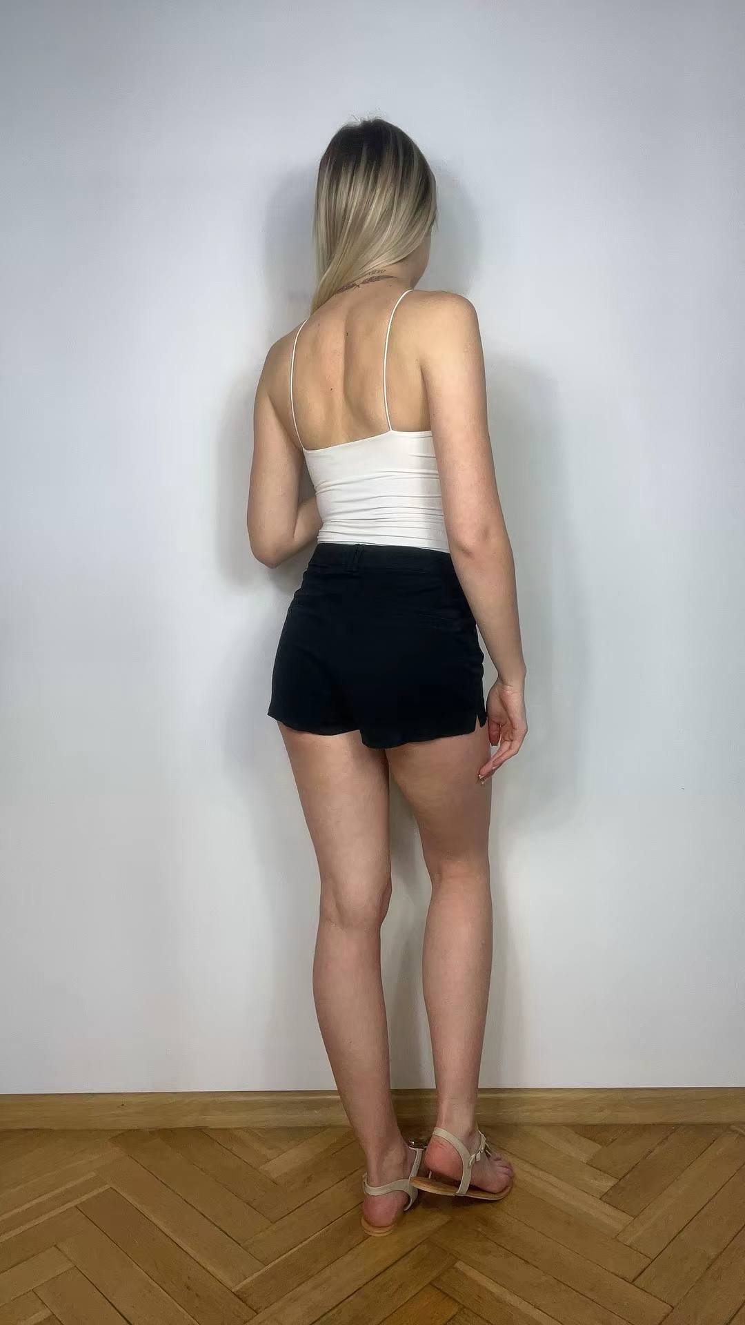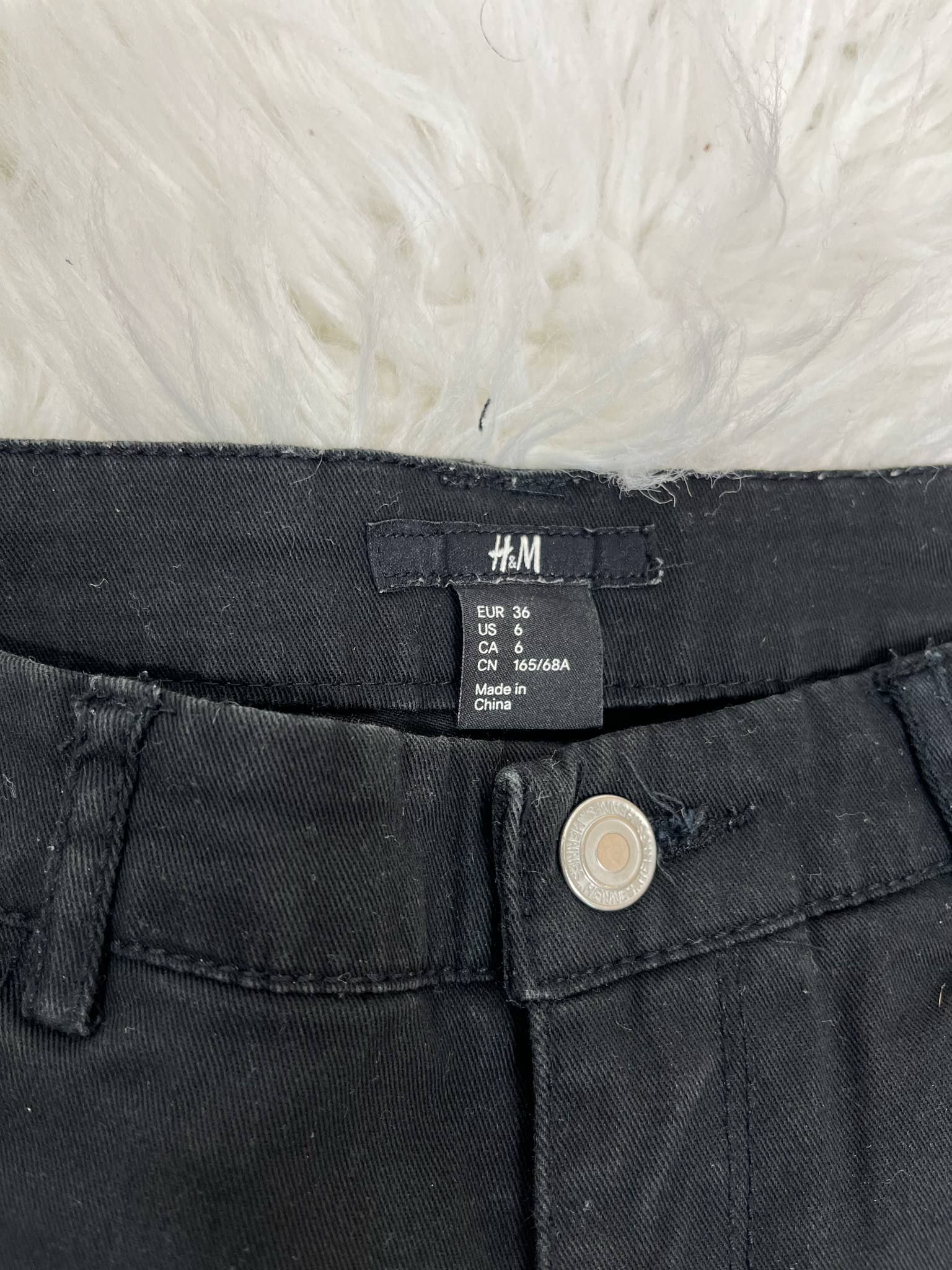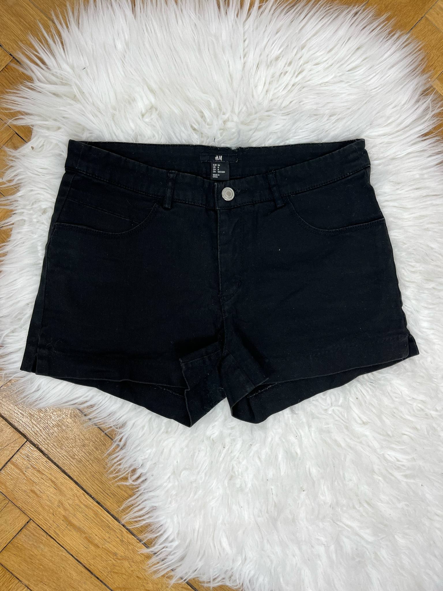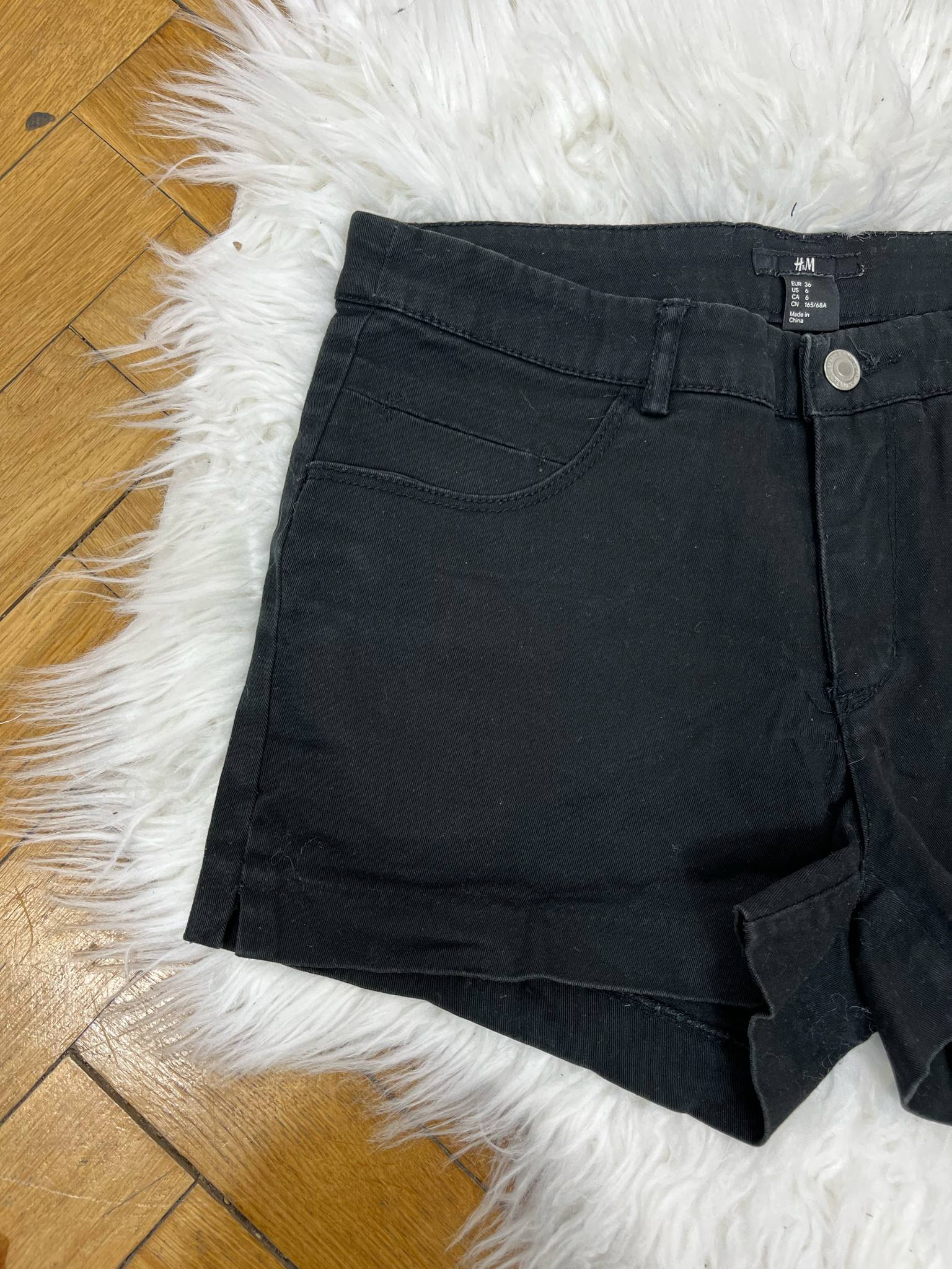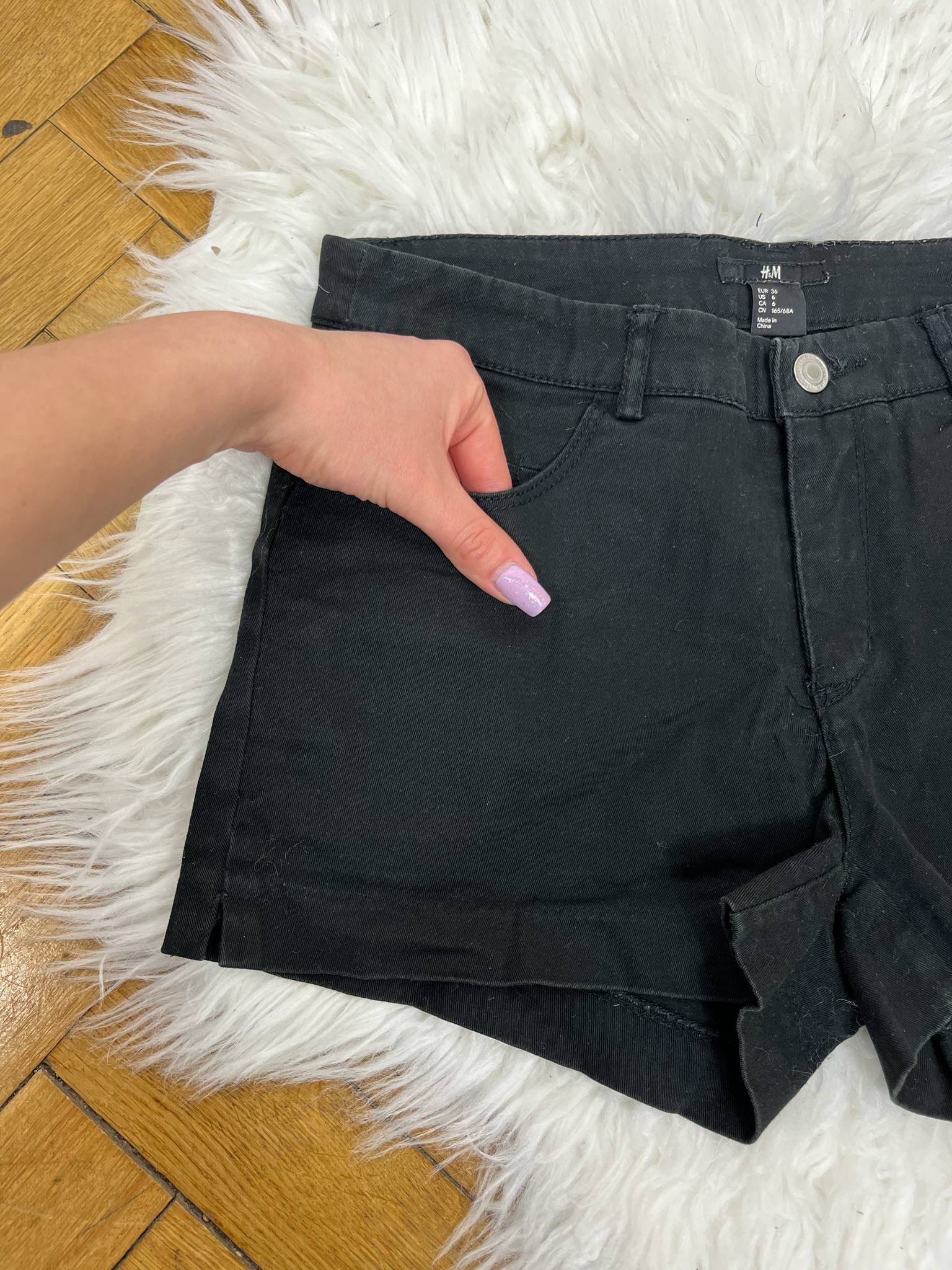 Spodenki jeansowe H&M rozmiar S (36). Kolor czarny. Cienki, lekko elastyczny jeans. Skład materiału 97% bawełna, 3% elastan. Wymiary: długość 34 cm, pas 36-39 cm, szerokość nogawki 27-30 cm, krok przód 20 cm. Stan idealny.