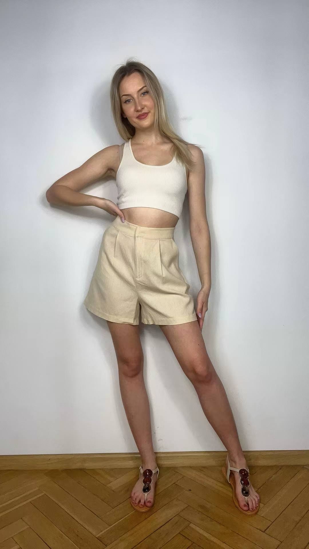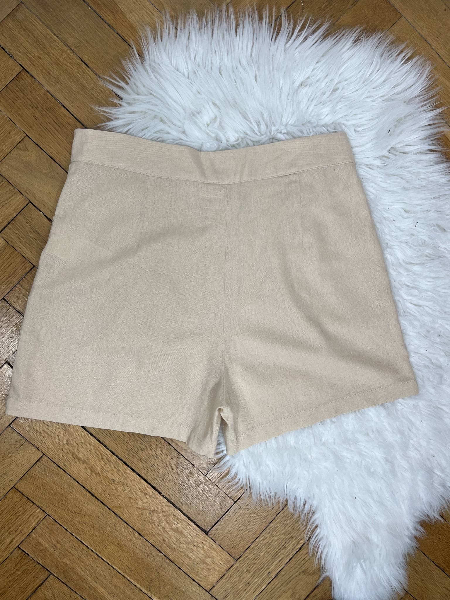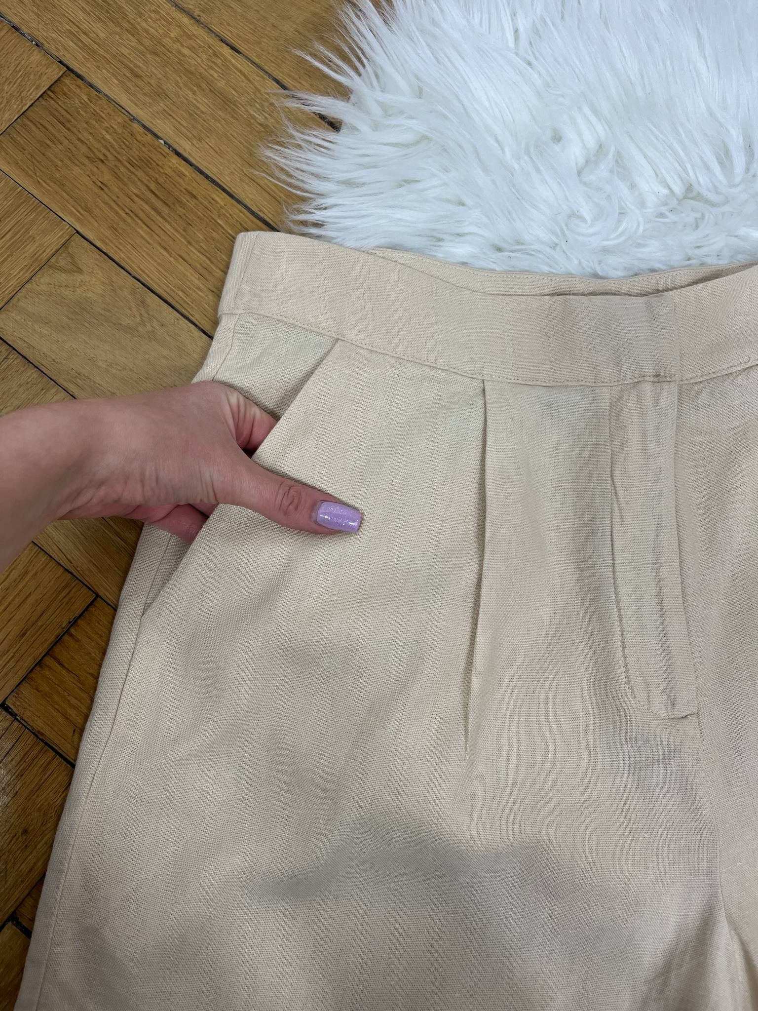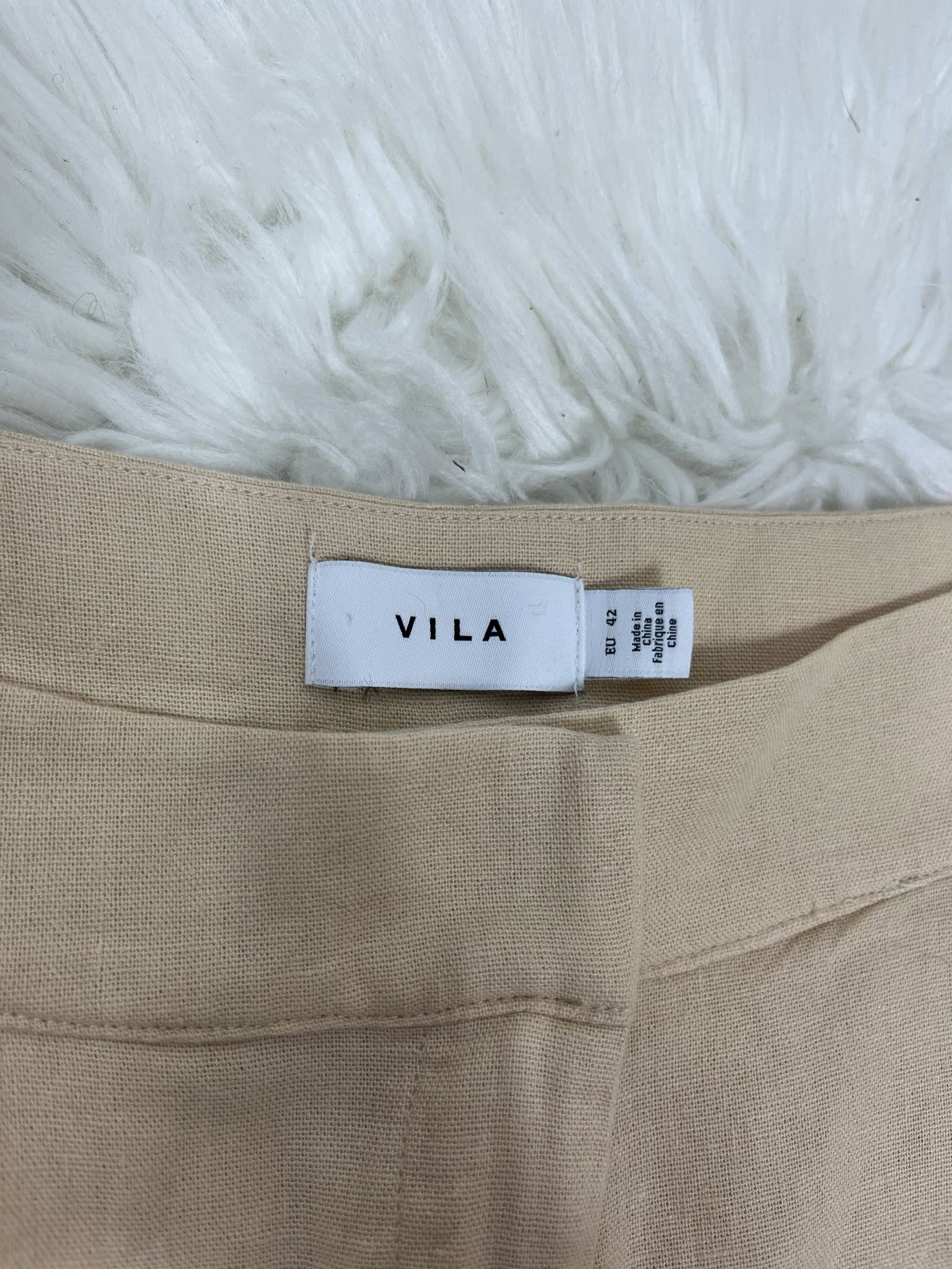 Eleganckie lniane spodnie Vila rozmiar XL (42). Kolor beżowy. Luźny krój. Materiał w składzie 55% len, 45% wiskoza. Wymiary: długość 42 cm, pas 43 cm, krok przód 33 cm, szerokość nogawki 34 cm. Stan idealny.