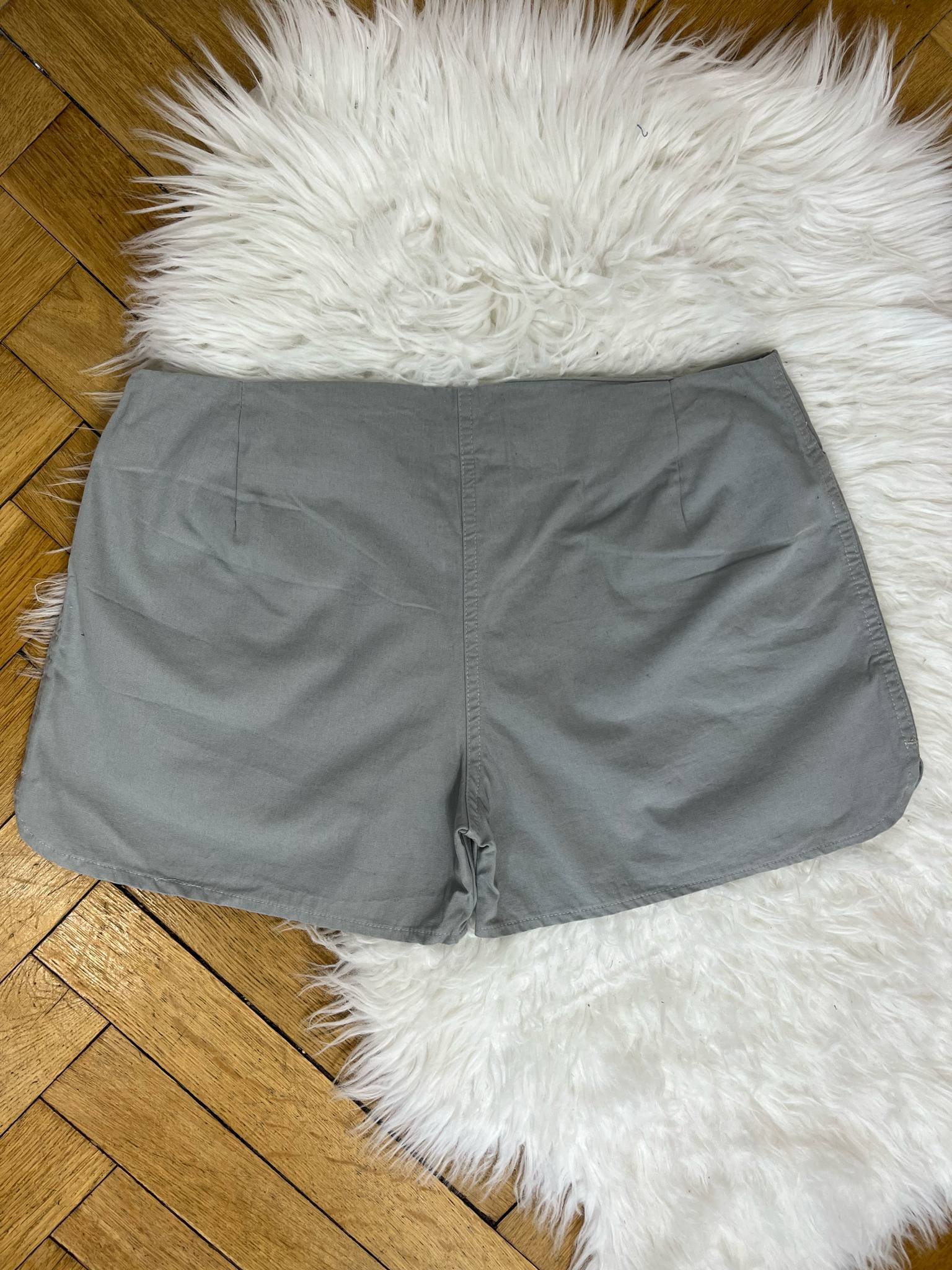 Spodenki w rozmiarze XL. Styl safari. Kolor zgaszona oliwka. Skład 100% bawełna, bardzo cienki jeans. Wymiary długość 32 cm, pas 40 cm, szerokość nogawki 30 cm. Stan nowe z metką.