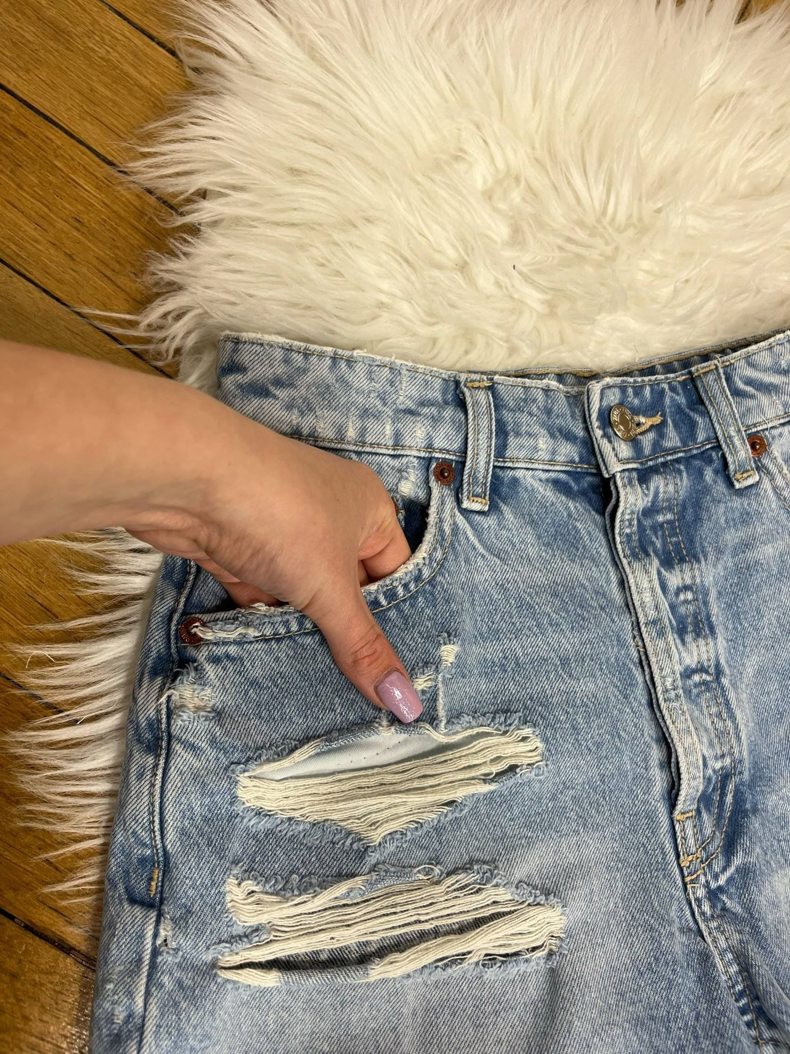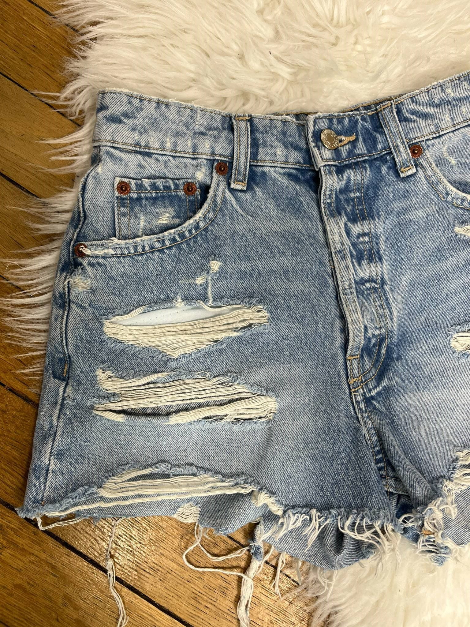 Spodenki jeansowe Zara rozmiar XS (34). Wyższy stan. Kieszenie. Materiał to 100% bawełna. Wymiary: długość 36 cm, pas 35 cm, krok przód 29 cm, szerokość nogawki 29 cm. Stan bardzo dobry.