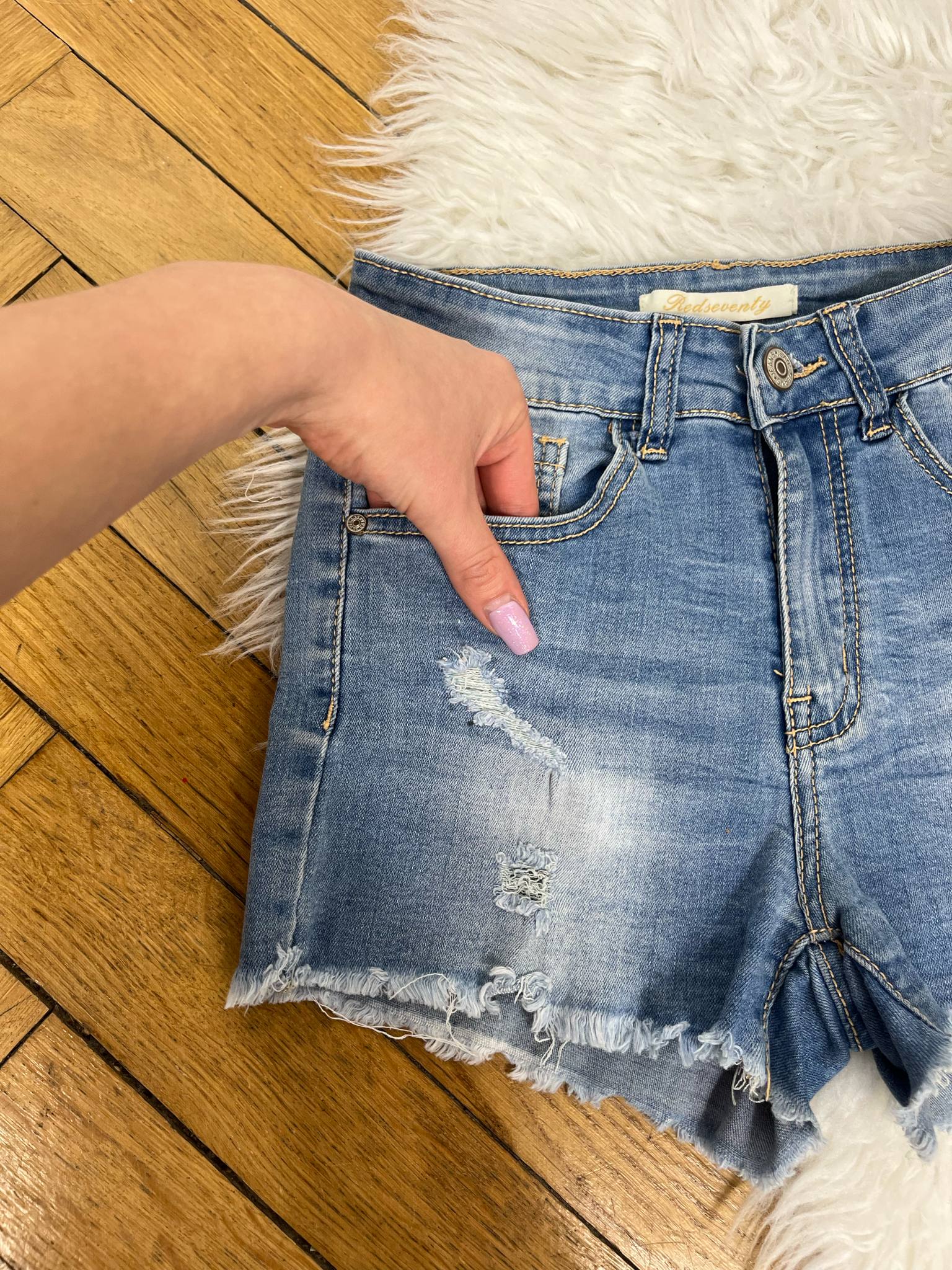 Spodenki jeansowe Redseventy rozmiar XS. Elastyczny jeans. Wymiary: pas 32-37 cm, szerokość nogawki 24-29 cm, krok przód 23 cm. Stan idealny.