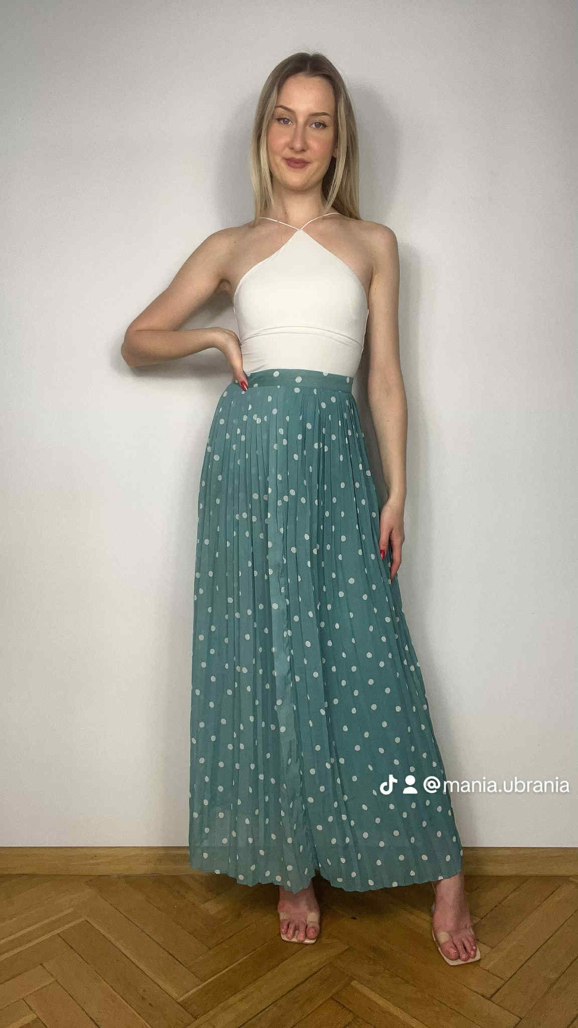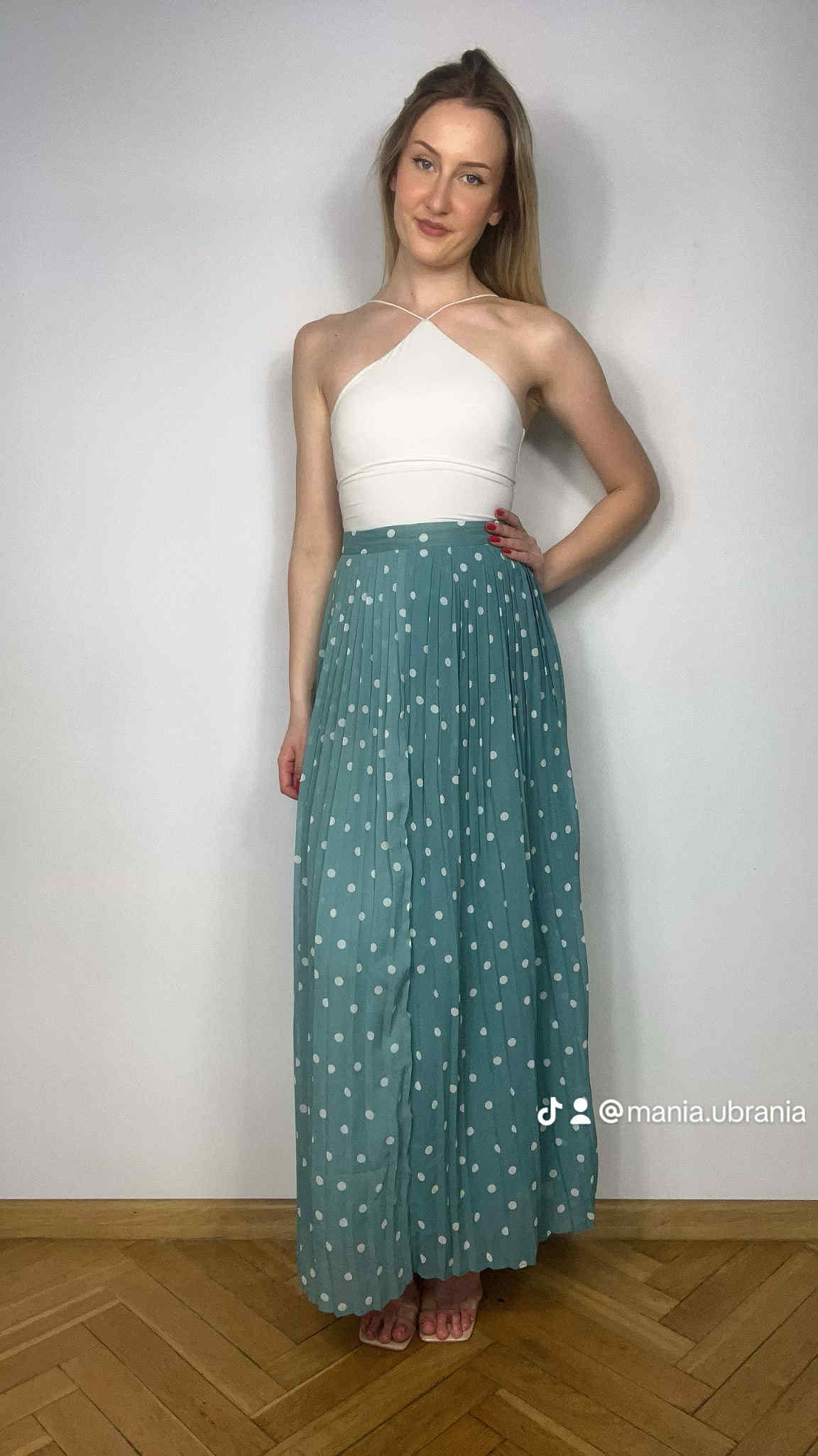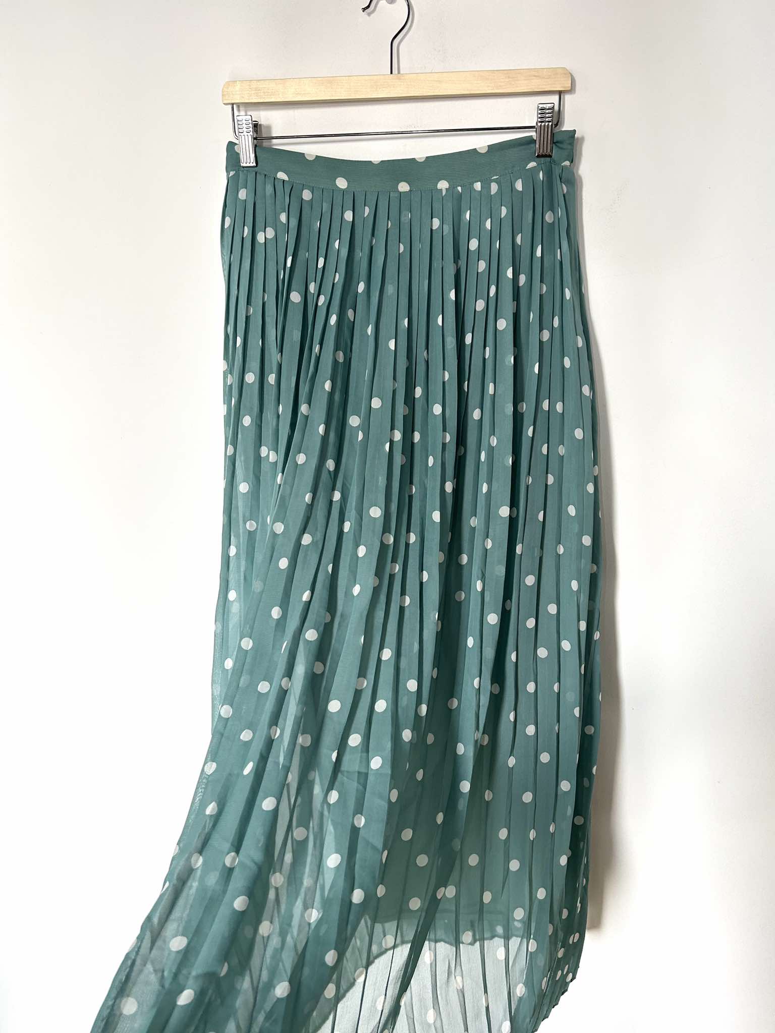Spódnica plisowana marki Vila rozmiar M. Kolor pistacjowy w białe kroki. Spódnica długa. Spódnica ma podszewkę. Wymiary długość 103 cm, pas 39 cm. Stan idealny.