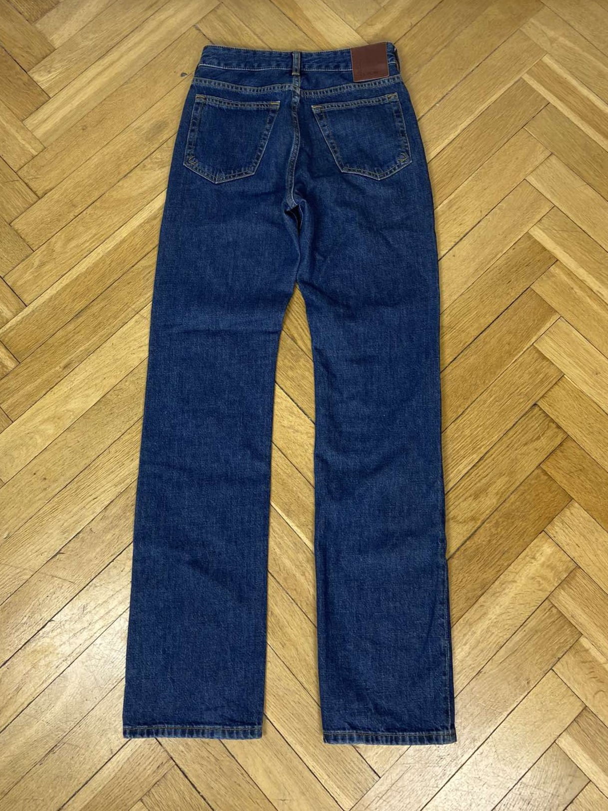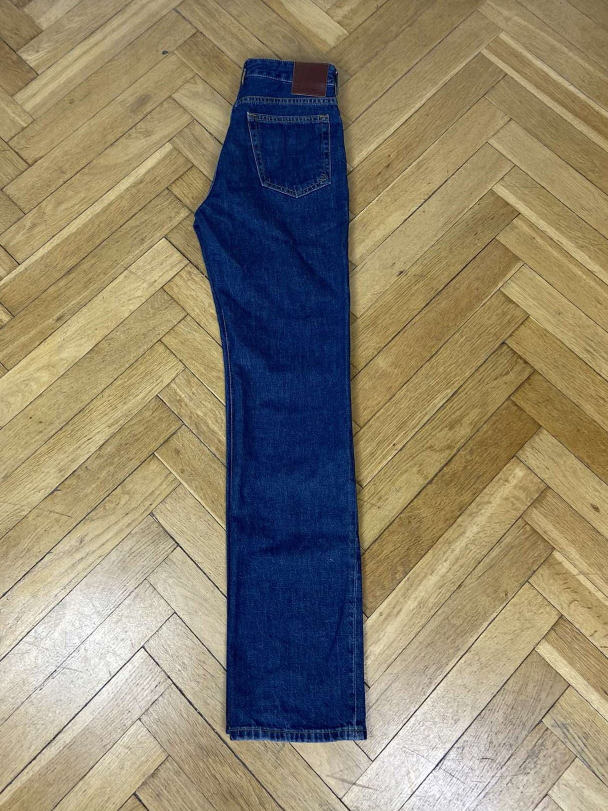 Spodnie z prostą nogawką marki never denim rozmiar W25 L32. Ciemny jeans - miękki. Wymiary długość 107 cm, pas 36 cm, krok 25 cm, szerokość nogawki 22,5 cm. Stan idealny.