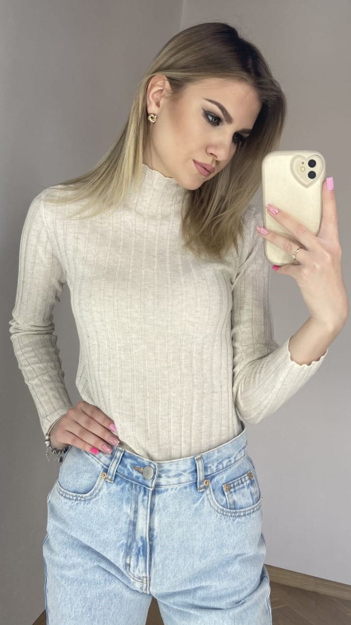 Marka: Vila Rozmiar: S Kolor dominujący: beżowy Wzór: bez wzoru Fason: dopasowany Dekolt: golf Rękaw: długi Skład materiałowy: 15% len, 85% poliester Cechy dodatkowe: cienki, lekko prześwitujący Wymiary długość całkowita: 62 cm długość rękaw: 61 cm szerokość pachy: 44 cm Stan: idealny Wady: brak